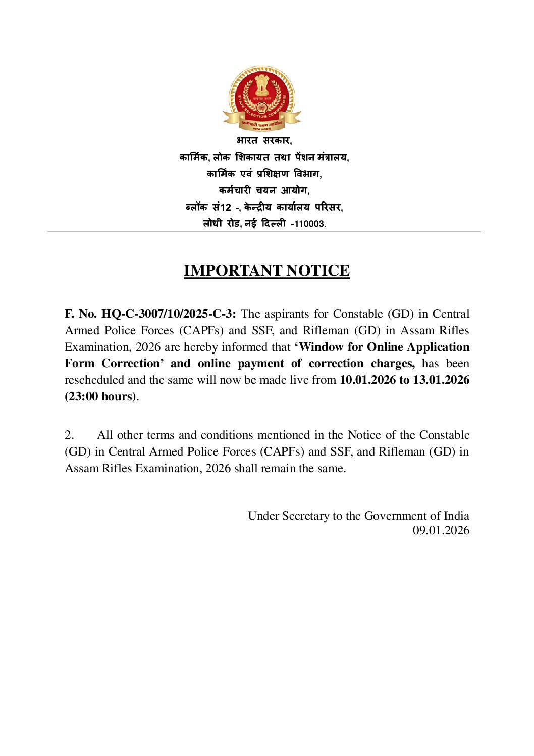 अगर आपने SSC GD Constable 2026 के फॉर्म में कोई भी गलती की है, तो Correction Window का उपयोग जरूर करें।